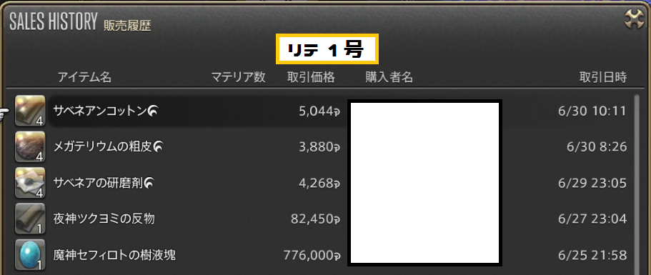 出品数が少ないこともあって、全然回転していませんね。ただ、蒼天エリアの極素材が良いお金になっていますw後は、毎日1回やってる極ツクヨミで反物が出れば売っています。