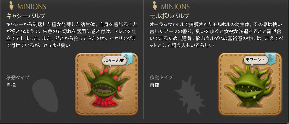 ミニオンのキャシーバルブです。値段からすれば40万G前後ですね。私は買いましたw